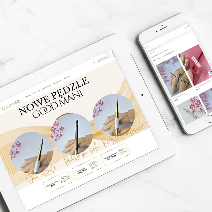Dla marki GoodMani stworzyliśmy spójną identyfikację wizualną od podstaw. Projekt obejmował: